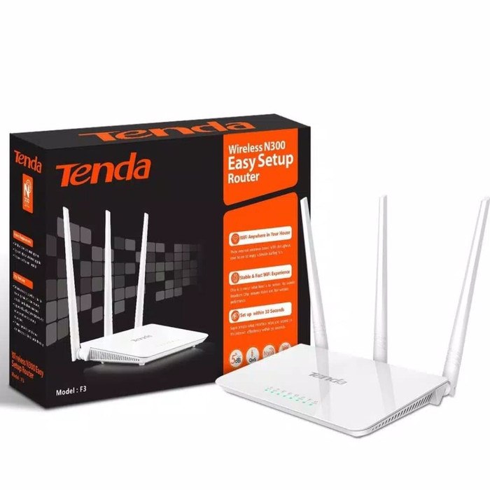 Kategori : Modem Pool Merek/Penerbit : Tenda F3 Kondisi : Baru Garansi : — Panjang : 15 cm Lebar : 10 cm Tinggi : 5 cm Berat : 500 gr Deskripsi Produk Data Rates Up to 300Mbps Standards Protocol 802.11 b/g/n Operating Frequency 2.4Ghz (Single Band) Antena 3 x 5dBi external undetachable antennas Dimensi Produk 127.4 x 90.5 x 26mm